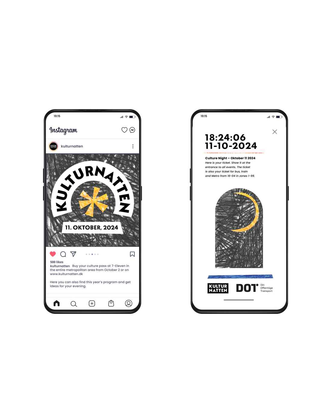 To see the city in a new way, each year a local artist is commissioned to add their personal touch to Kulturnatten’s communication. As a class project, I was tasked to create my own visual identity for Kulturnatten 2024 as well as a new logotype and visual language.